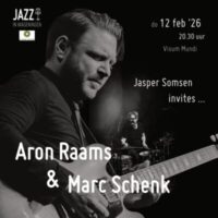 Aron Raams (gitaar) & Marc Schenk (drums) zijn de gasten van contrabassist Jasper Somsen. Samen duiken ze in elkaars muziek en maken hier een feestje van op het podium! Donderdag 12 februari in 20.30 in Visum … lees verder
